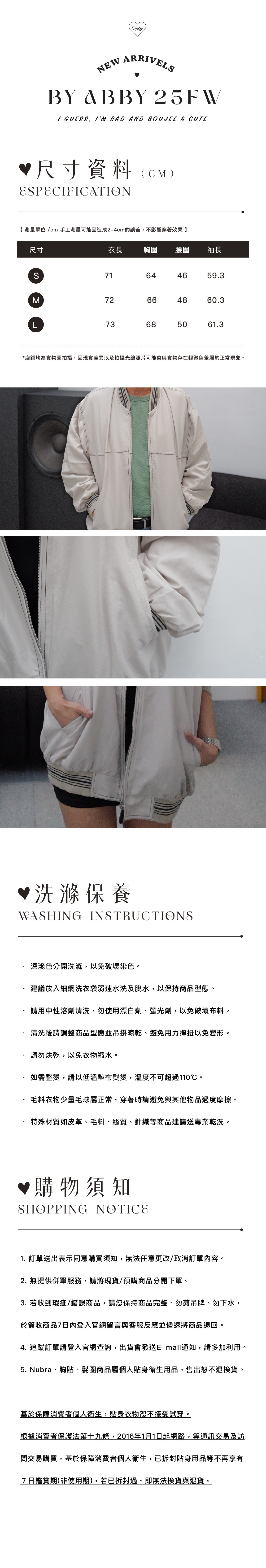 [Yaoqing jacket 車線飛行外套] 俐落車線,防風材質。袖口、下擺鬆緊帶設計。